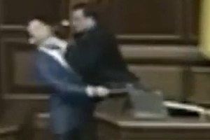 نائب رئيس البرلمان الأوكراني يعتدي على زميله!!