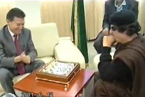 القذافي يلعب الشطرنج رغم القصف الكثيف على طرابلس