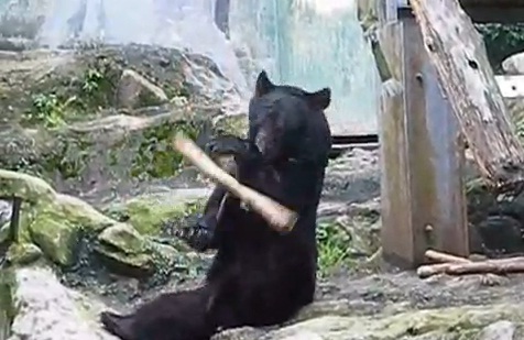 يقدم الدب كومو عرضاً يومياً بالألعاب القتالية في حديقة حيوان يابانية.