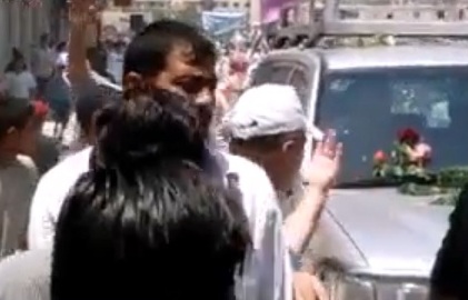 بث ناشطون على موقع يوتيوب شريطاً مصوراً يظهر فيه مناهضون للنظام السوري يرحبون بالسفير السفير الأميركي في سورية، روبرت فورد، خلال زيارته،أمس، مدينة حماة، التي شهدت أكبر تجمع معارض، حيث تظاهر نحو 450 ألف شخص تلبية لدعوة وجهها ناشطون تحت شعار "لا للحوار" مع نظام الرئيس بشار الأسد.