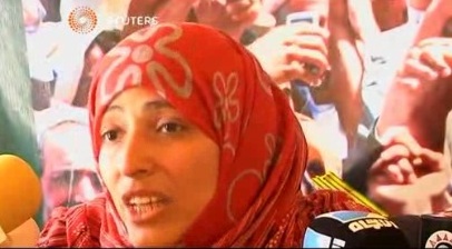 وتوكل كرمان صحفية وأم، تبلغ من العمر اثنين وثلاثين عاماً، واعتقلت لفترة خلال الاحتجاجات باليمن.