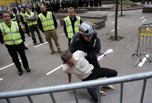 وأعتقلت الشرطة نحو سبعين محتجا خلال عملية الاجلاء لتحديهم امر الرحيل كما اعتقل عدد آخر على مقربة من مركز الاعتصام.