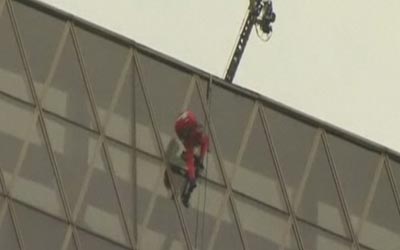 الرجل العنكبوت يتسلق ناطحة سحاب