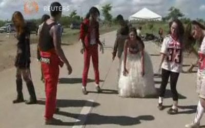 شارك الآلاف من الشباب الفلبيني في سباق جمع الكل تحت هدف واحد، وهو الوصول الى نهاية السباق دون الوقوع فريسة بين أيدي آكلي لحوم البشر الذين يعترضون طريق السباق.