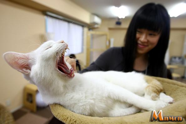 في بادرة تعد الأولى من نوعها في اليابان تم افتتاح مقاهي خاصة للقطط ، حيث يمكن للزبائن تناول مشروب إلي جانب مداعبة القطط في جو هادئ، الأمر الذي من شأنه إزالة التوتر العصبي وتحسين المزاج، حسب تصريحات اصحاب المقاهي .