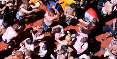 شارك أكثر من أربعين ألف أسباني وسائح في مهرجان التراشق بالطماطم في قرية بونول القريبة من مدينة فالنسيا، باسبانيا.