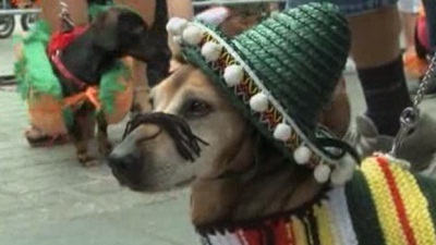وتنافس مقتنو الكلاب في إلباسها أزياء تعكس صفاتها، وفاز بجائزة أزياء الكلاب للعام الجاري الشاب الجنوبي بوريس الذي وضع على كلبه زياً مكسيكياً بكامل مشتملاته.