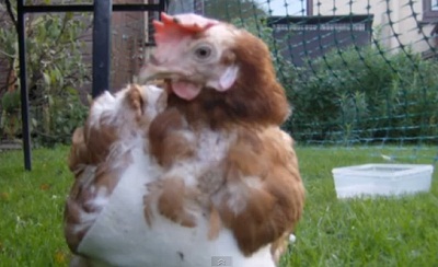 وذكرت صحيفة "مترو" أن الدجاجة أنقذت من مزرعة للبيض العام الماضي بعد إصابتها بكسر في الحوض، ونقلت إلى رعاية هيلين جونز، التي اكتشفت مهاراتها بعد أن علمت أن بإمكان الدجاج القيام بالخدع.