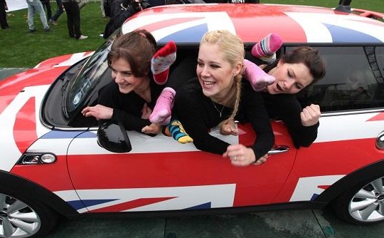 في تحد فريد من نوعه، قامت 28 امرأة بريطانية بدخول موسوعة "غينيس"، عن طريق الانحشار في سيارة "ميني كوبر" الصغيرة، جميعهن دفعة واحدة.