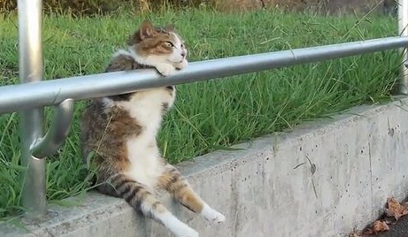 التقط أحد هواة التصوير اليابانيين مقطع فيديو لقط مسترخ في وقت الغروب، حيث يجلس القط على حافة سياج وهو يمد يديه براحة واسترخاء لدرجة تشعر المشاهد بأنه يكاد أن ينام.