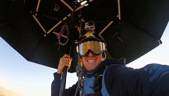 وتعتبر هذه التجربة الجريئة محاولة من المغامر لإثبات أنه من الممكن أن تتطور المظلة المطرية العادية لتصبح وسيلة للطيران في المستقبل.