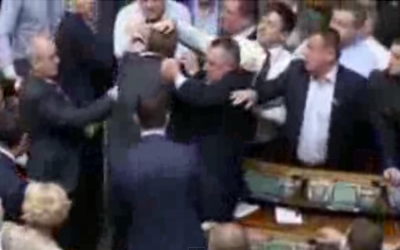 شهدت الجلسة الأخيرة في البرلمان الأوكراني، ثالث مواجهة بين النواب خلال أقل من عام، حيث تبادل النواب اللكمات، بعد اندلاع شرارة المواجهة بين اثنين منهم.