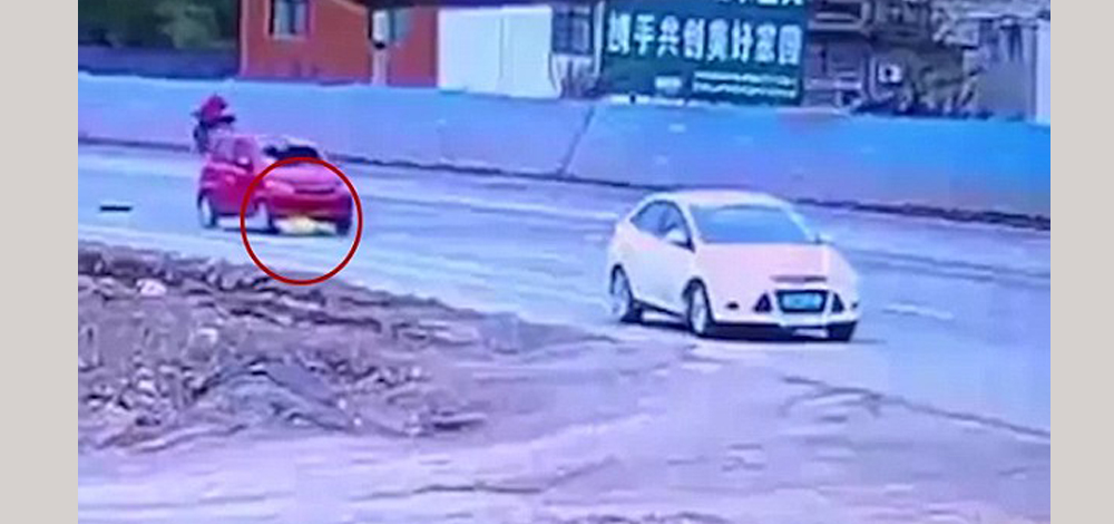 نجت سيدة صينية من الموت، بعد أن دهستها سيارة، طارحة جسدها على الأرض دون أن تتوقف لمسافة كبيرة.