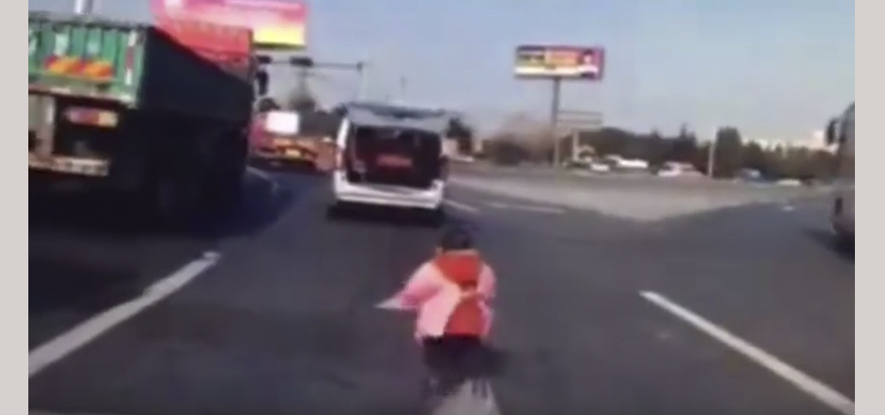 التقط الفيديو في الصين في طريق يعج بالحافلات، فيما يظهر الطفل محاولا اللحاق بالسيارة عقب نهوضه سليما.