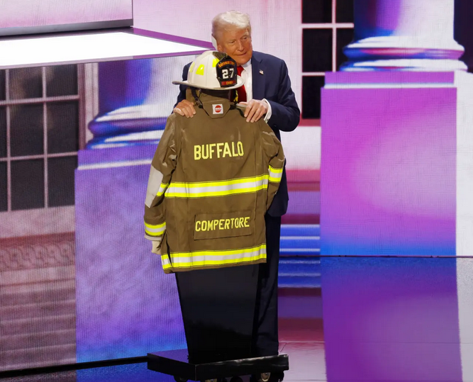 قبّل ترمب خوذة رجل الإطفاء، كوري كومبيراتور، الذي قتل خلال محاولة الاغتيال التي تعرض لها ترمب في بنسلفانيا.