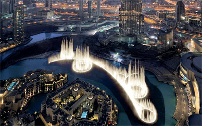 تقدّم «دبي فاونتن»، النافورة الراقصة الأطول في العالم، الواقعة بمحاذاة الواجهة المائية لـ«دبي مول»، عروضاً مائية راقصة على أنغام السلام الوطني الإماراتي ابتهاجاً باحتفالات اليوم الوطني الـ40 للإمارات، يومياً، خلال الفترة الممتدة من الأول إلى الثالث من الشهر المقبل.