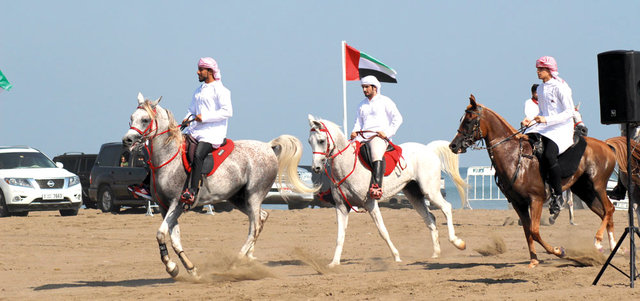 خيّالة الإمارات، على كورنيش كلباء، خلال الاحتفال باليوم الوطني الـ44 لدولة الإمارات، والذي شارك فيه أبناء المدينة، وقدمت خلاله العديد من الفعاليات الجميلة.