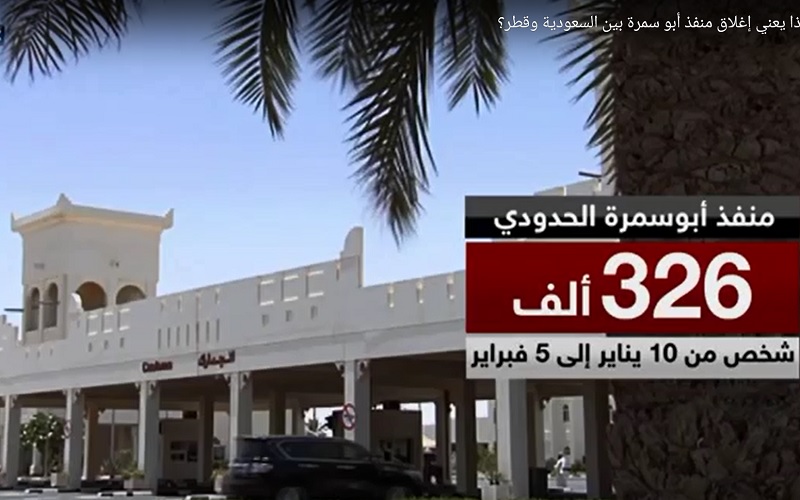 قالت قناة سكاي نيوز في تقرير مصور إن إغلاق منفذ أبو سمرة الحدودي بين قطر والسعودية، قد يكون له تداعيات خطيرة، حيث يمر عبر هذا المنفذ نحو 40% من الواردات الغذائية لقطر.