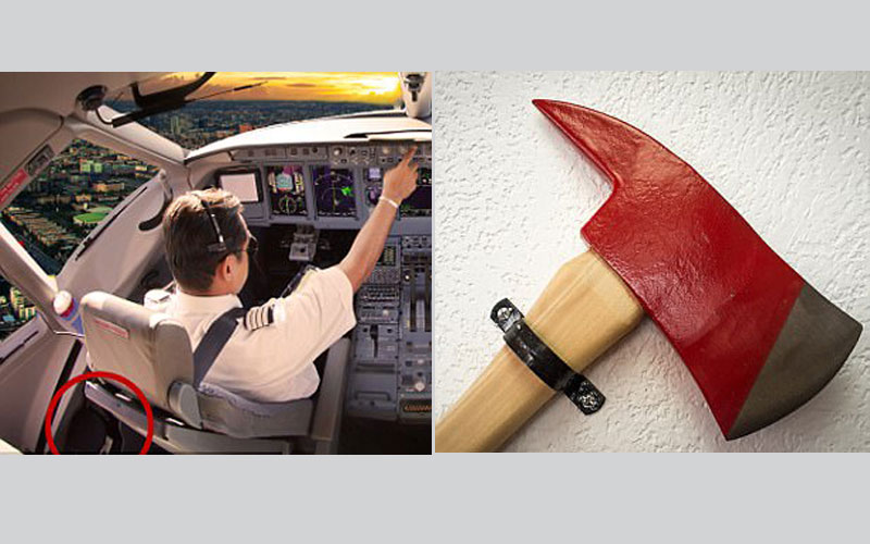 إلا أن المثلث الأسود ليس الشيء الوحيد الملفت للنظر في الطائرات، حيث تحوي الطائرات أيضا على فأس، ويسمى فأس السلامة، والذي يستخدم لقطع ألواح قمرة القيادة ومناطق أخرى يتعذر الخروج منها داخل الطائرة في حال حدوث حريق، كما أن عملية القطع هذه تسهم في تبديد النار المشتعلة ما يسمح لطفايات الحرائق القيام بمهامها بطريقة أكثر فاعلية.