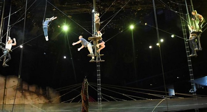 وأظهرت مقاطع فيديو نشرت على الانترنت البهلوان في قفص مرتفع فوق الجماهير قبل أن يسقط فجأة من ارتفاع 30 مترا تقريبا على الأرض.