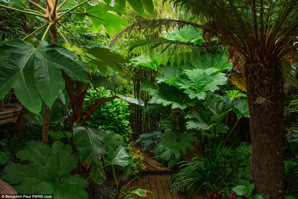حول رجل في بريطانيا 61 عاما، حديقة منزله إلى غابة استوائية لولعه بالنباتات والحشرات بعد رحلة قضاها في غابة استوائية في كورنوال عام 1990.