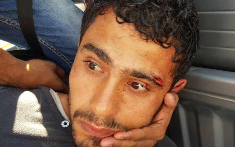 المعتدي بعد إلقاءالقبض عليه من قبل موظفي المنتجع وأحد المتواجدين في الموقع. إي بي أيه