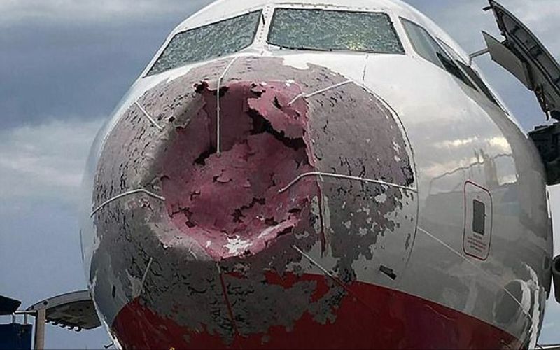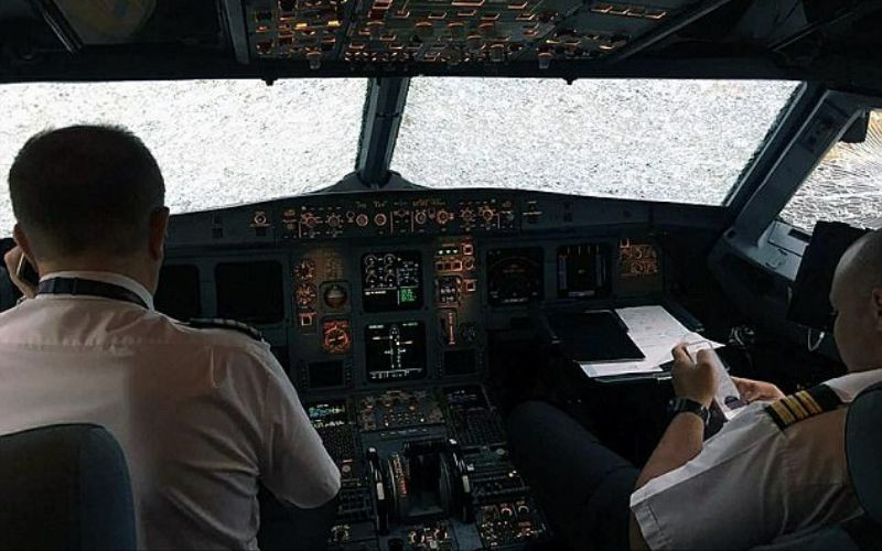 نجح طيار بالهبوط بأمان في طائرة تقل 127 سائحا، بعد تعرض الزجاج الأمامي للطائرة لضرر كبير نتيجة عاصفة ثلجية وتساقط حبات البرد عليه ماحجب الرؤية بشكل كلي عن الطيار.