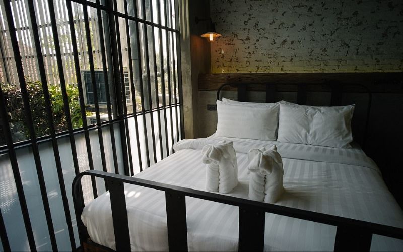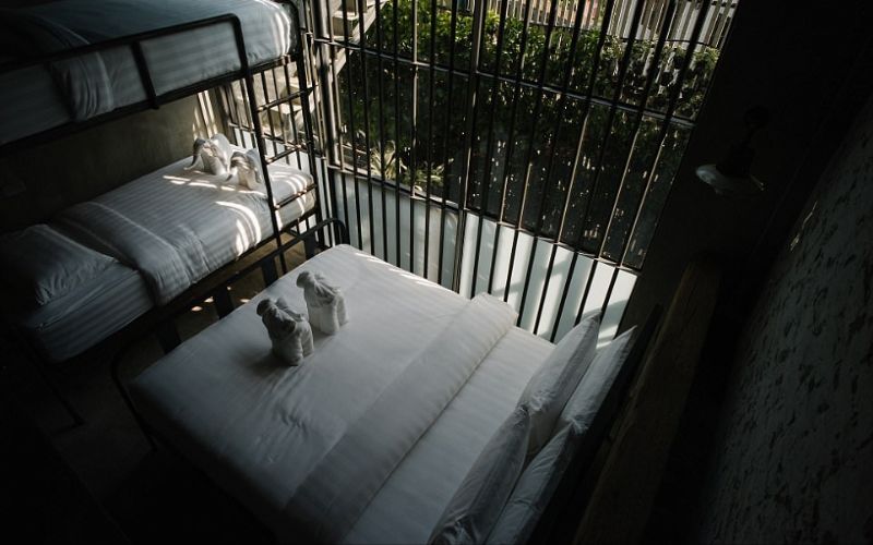 افتتح فندق "سوك ستيشن" الذي يتخذ شكل السجن أبوابه في بانكوك، هذا الصيف، ليوفر لزواره تجربة شبيهة بتلك التي من الممكن أن يختبروها في سجن حقيقي، مقابل 40 دولارا، أي ما يعادل 145 درهما إماراتيا.