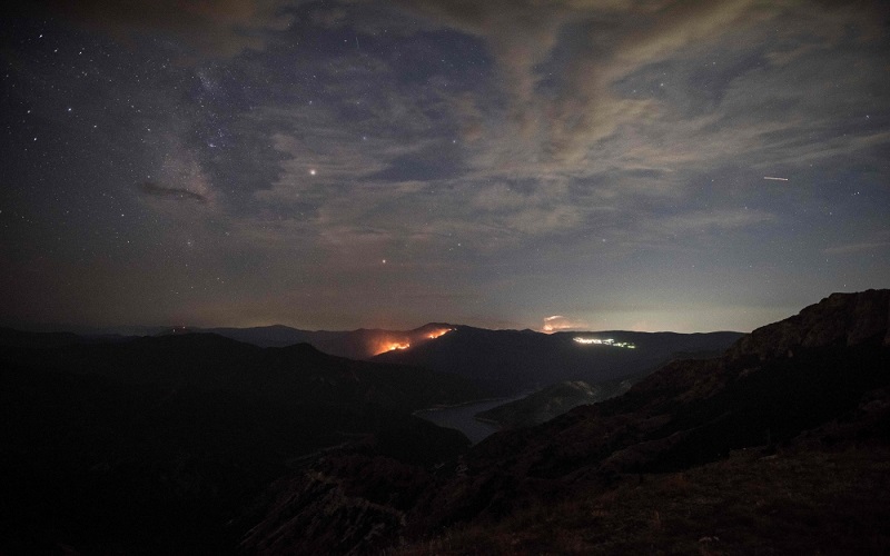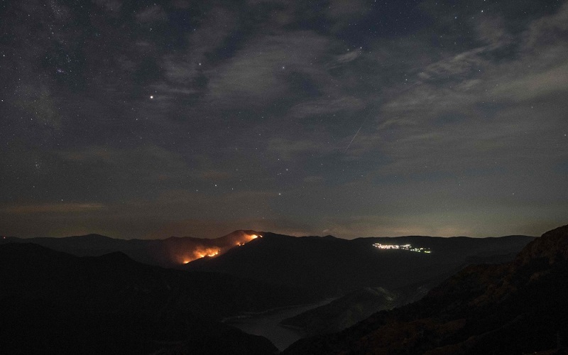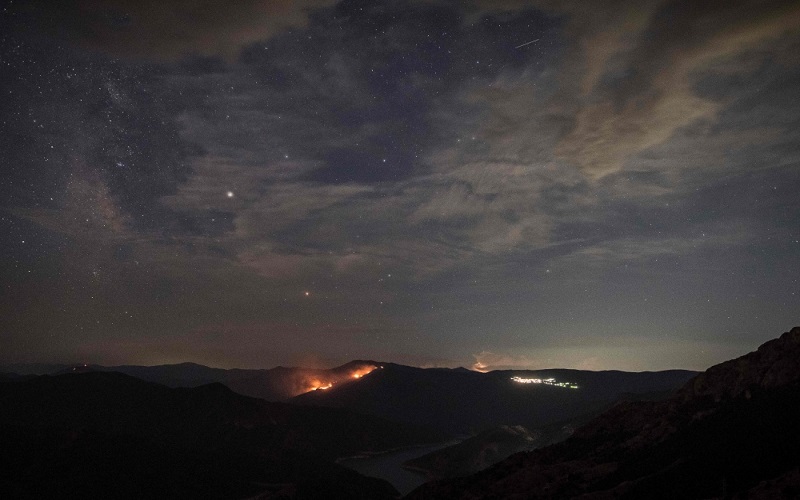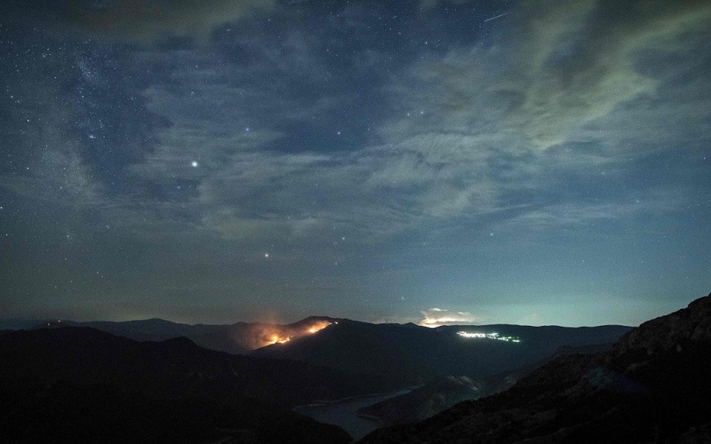 الُتقطت هذه الصور، أمس، حيث يظهر نيزك "بيرسيد دش"، الذي يضيئ السماء المظلمة بالقرب من بالقرب من سكوبيي، مقدونيا، على طول درب التبانة.