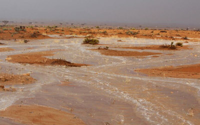 ونشر مركز العاصفة عبر قناته على "يوتيوب"، مقطع فيديو يظهر تدفق السيول، كما تجمعت كميات من مياه الأمطار في المنخفضات ومجاري الأودية.
