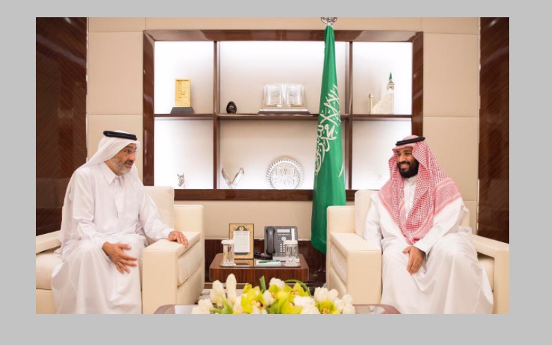 محمد بن سلمان بن عبدالعزيز آل سعود خلال استقباله عبدالله بن علي بن عبدالله بن جاسم