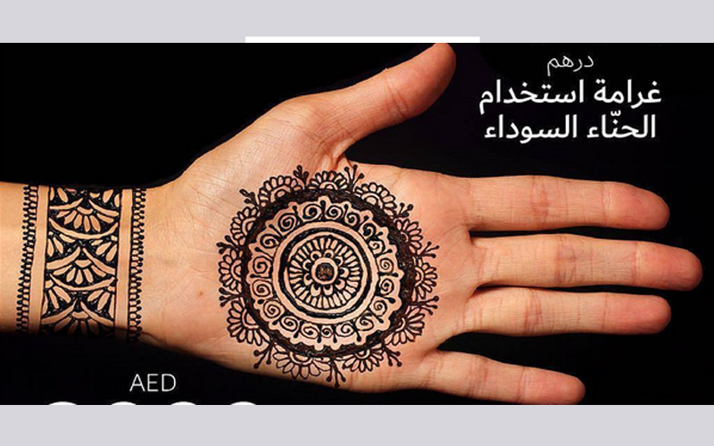 أعلنت بلدية دبي عن غرامة بقيمة 2000 درهم لمستخدمي الحناء السوداء والخلطات غير المعتمدة حسبما نشرت البلدية في حسابها على موقع التواصل الاجتماعي (انستغرام).