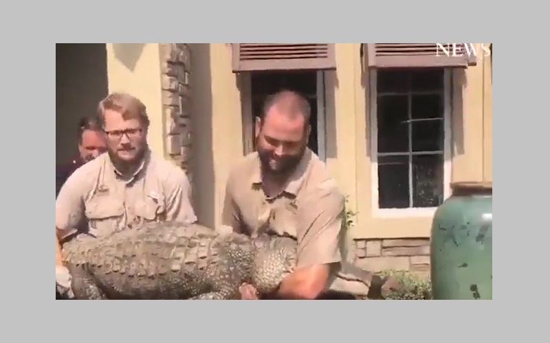 وأشارت الصحيفة إلى أن الإميركي ويدعى بريان فوستر عاد إلى بيته برفقة فريق لتنظيف المنزل ليجد التمساح يتجول في البيت بعد ان دفعته مياه الفيضان إلى داخل المنزل حيث قام بالاتصال بالشرطة التي أحضرت فريقاً من مركز الحياة البرية لإخلاء التمساح.