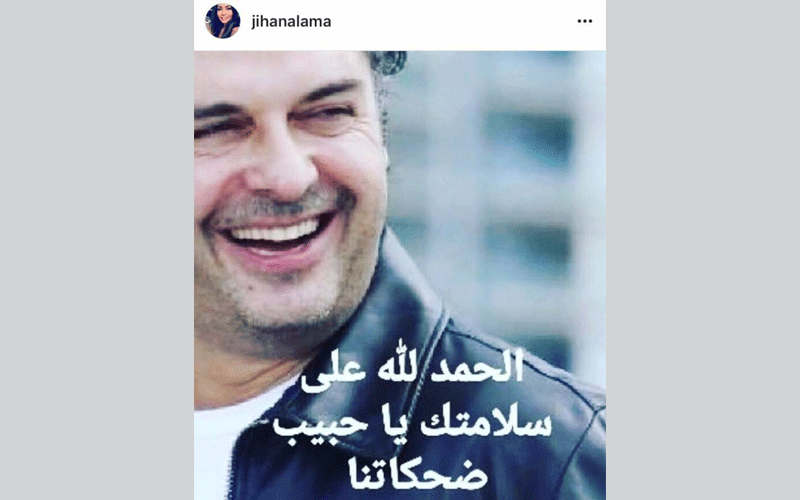 نشرت زوجة الفنان اللبناني راغب علامة صورة له على انستغرام مكتوب عليها "الحمدلله على سلامتك يا حبيب ضحكاتنا" وذلك بعد حادثة سقوطه على المسرح خلال احياء مهرجانات بكاسين.
