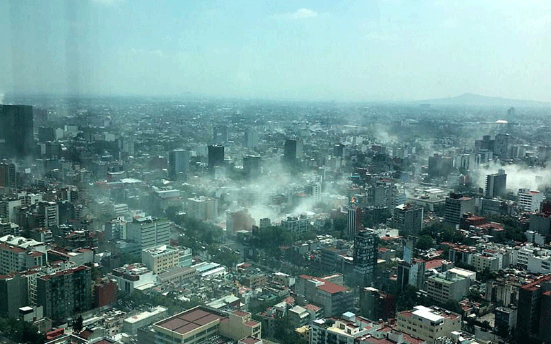 وأظهرت صور ومقاطع فيديو بثت عبر مواقع التواصل الاجتماعي مباني ضخمة في مكسيكو ستي تتمايل أثناء الزلزال ومباني أخرى تنهار بشكل كامل بعد الزلزال.