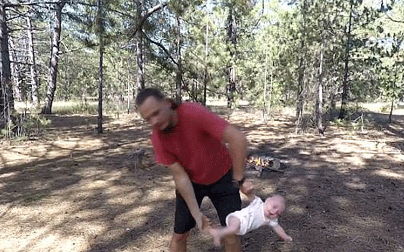 أب يلوّح بابنته في الهواء تشبّهاً بتمارين رواد الفضاء