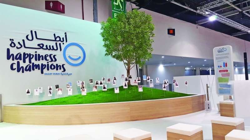 قدم جناح دبي الذكية في أسبوع "جيتكس للتقنية" منطقة صغيرة تسمى بـ"هضبة السعادة" تضم 47 بطلاً للسعادة يمثلون أكثرمن 40 جهة حكومية في دبي.