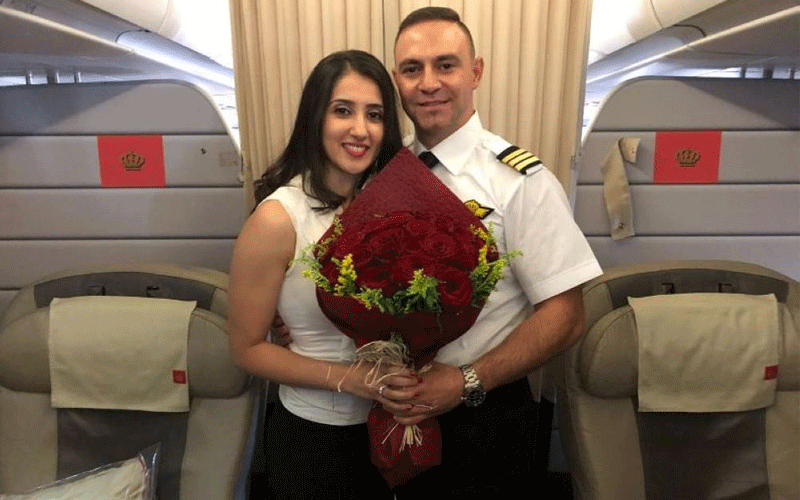 فاجأ مساعد كابتن طائرة تابعة للخطوط الملكية الأردنية المسافرين على متن رحلة من عمان إلى دبي، بإعلانه التقدم للزواج من فتاة كانت بين الركاب.
