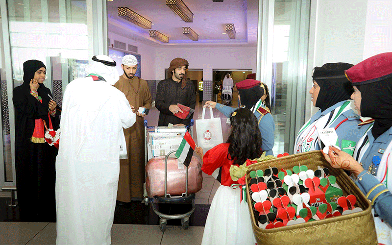 شرطة أبوظبي توزع الأعلام والهدايا على المسافرين بمطار أبوظبي