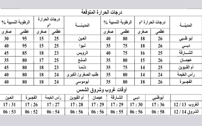توقع المركز الوطني للأرصاد الجوية والزلازل، اليوم، أن تشهد الدولة تقلبات جوية وحالة من حالات عدم الإستقرار في الأحوال الجوية خلال هذه الفترة، حيث تتأثر الدولة بإمتداد منخفض جوي سطحي يصاحبه إمتداد منخفض جوي في طبقات الجو العليا تصاحبه كتلة هوائية باردة من الشمال مما يؤدي إلى تكاثر كميات السحب تدريجيا من يوم الجمعة ويتخللها بعض السحب الركامية الممطرة خاصة على المناطق الشمالية والشرقية والجزر.