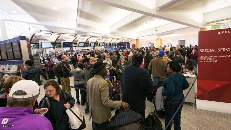 ونشر مسافرون قادمون إلى الولايات المتحدة صورا على وسائل التواصل الاجتماعي لطوابير طويلة في مطار جون كنيدي الدولي في نيويورك ومطار هارتفسيلد جاكسون أتلانتا الدولي.