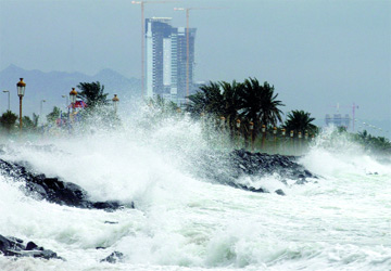 جدد المركز الوطني للأرصاد تحذيراته لمرتادي البحر في بحر عمان نتيجة اضطرابه في العمق بسبب الرياح الشمالية الغربية النشطة، حيث يتراوح ارتفاع الموج من 4 - 6 يصل إلى 8 أقدام وذلك حتى الساعة الثالثة عصر يوم غد.