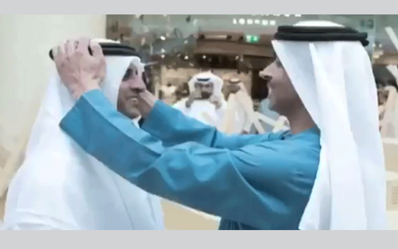 قام سمو الشيخ هزاع بن زايد آل نهيان، نائب رئيس المجلس التنفيذي لإمارة أبوظبي بإعادة ترتيب "غترة" المصور سعيد النيادي الذي تعثر وهو يؤدي واجبه أثناء احدى التغطيات في لفتة إنسانية مع المصور.