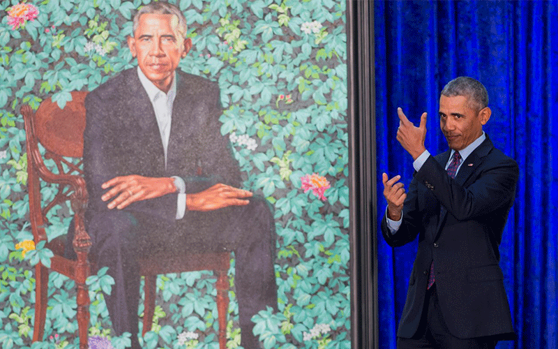 ألقى الرئيس الأميركي السابق باراك أوباما بتعليقات مازحة عن أذنيه وشعره الرمادي أثناء إزاحة الستار عن لوحتين زيتيتين رسميتين له ولزوجته ميشيل، في معرض الصور الوطني الذي تديره مؤسسة سميثسونيان.