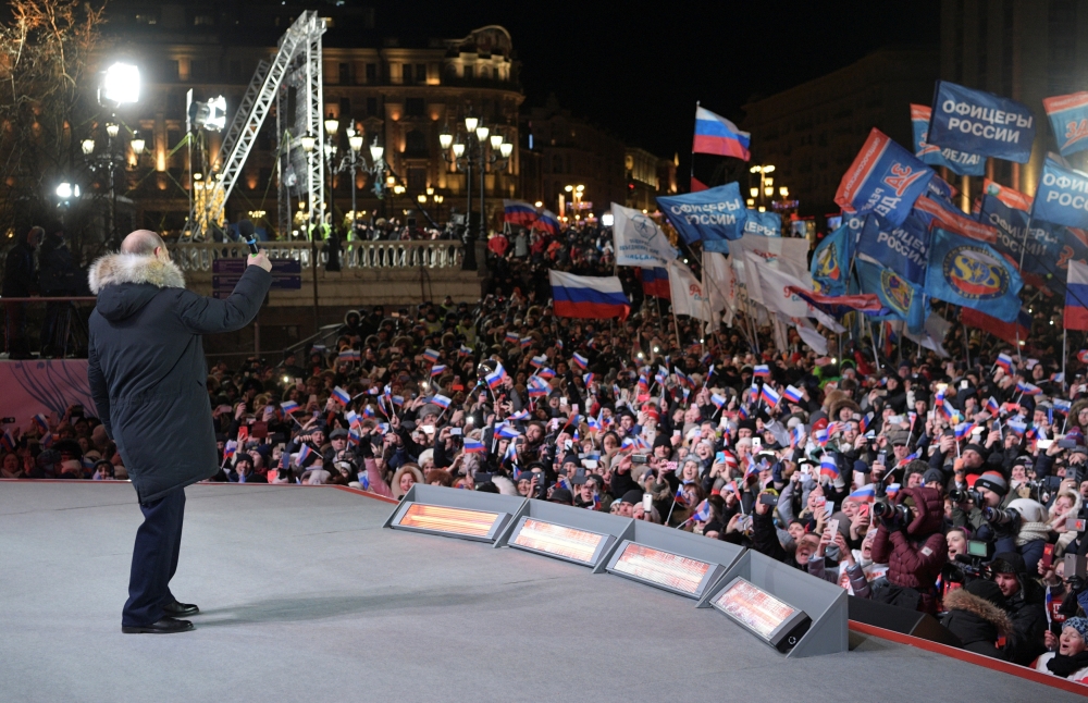 وشكر الرئيس الروسي المئات من أنصاره الذين تجمعوا في وسط موسكو للاحتفال بفوزه الكبير في الانتخابات الرئاسية، معتبرا أن هذا الأمر يظهر «الثقة والأمل» لدى الشعب الروسي.
