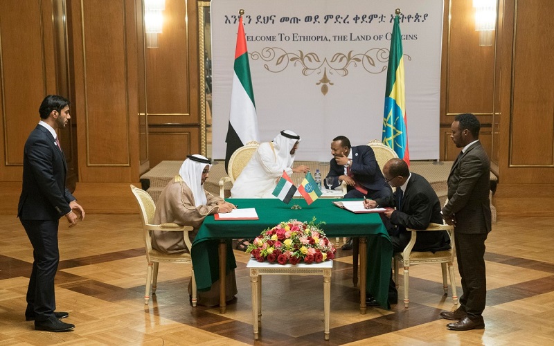 محمد بن زايد وأبي أحمد يشهدان توقيع مذكرات تفاهم بين الإمارات وأثيوبيا