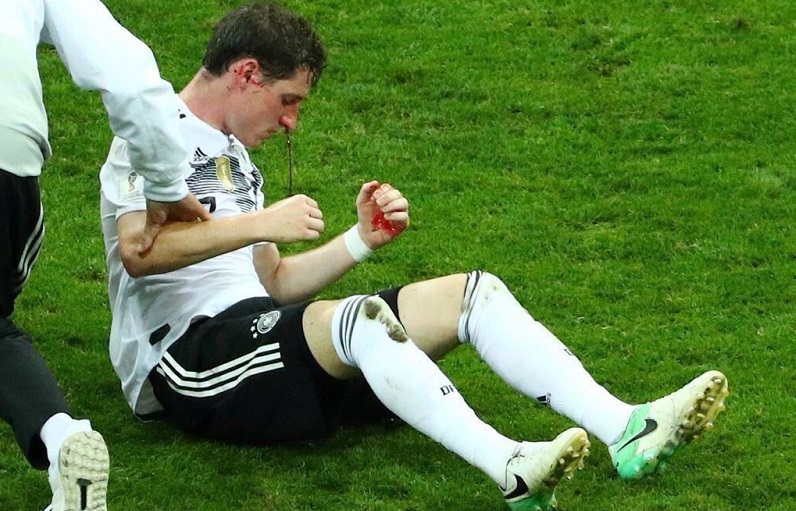 بالصور.. رودي يتعرض لكسر في الأنف خلال مباراة ألمانيا والسويد