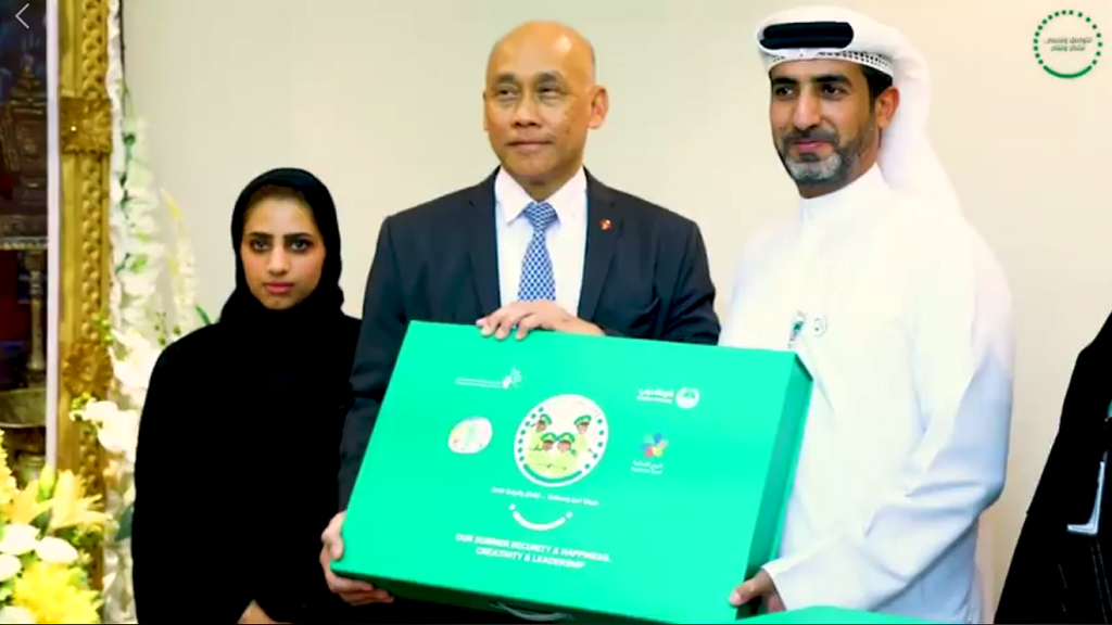 وقد تسلّم التكريم نيابة عن الفتيان القنصل العام التايلندي في الإمارات انوب بوراناسيت.