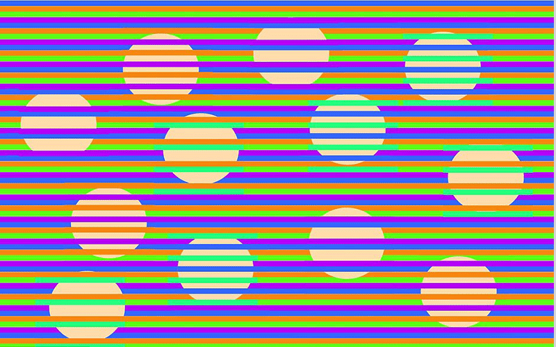 وبهذه الحالة تظهر الدوائر بألوان مختلفة اعتمادا على ألوان الخطوط الأفقية التي تمر فوقها.