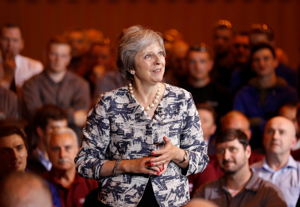 ولدى زيارتها لمصنع في مدينة نيوكاسل بشمال انجلترا، سأل أحد الناخبين ماي عن كيفية تكيفها مع ”أكثر وظيفة مجهدة في العالم“.